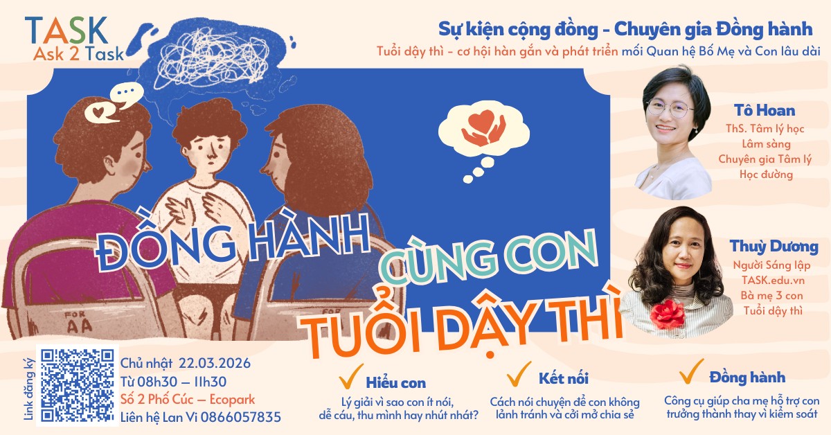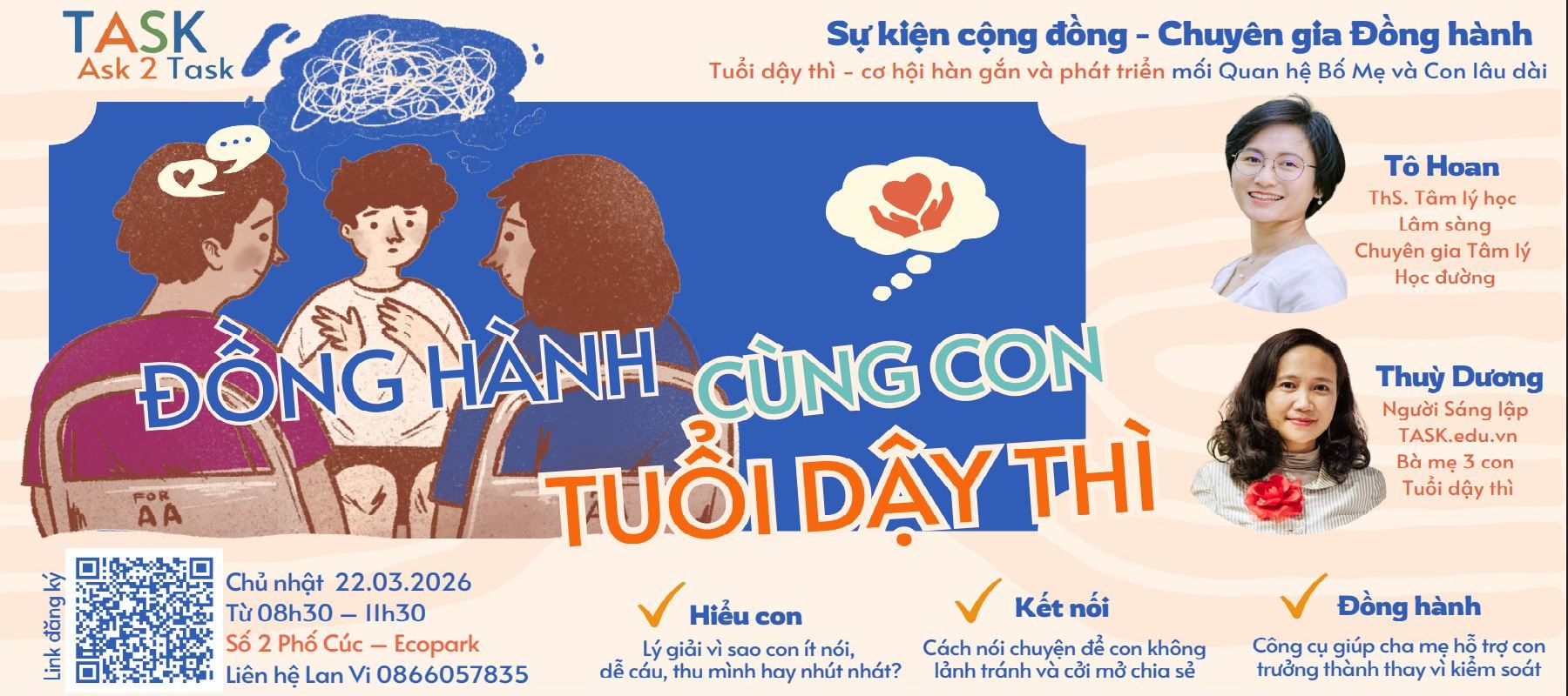 Học viện TASK đồng hành cùng Gia đình, Nhà trường và Xã hội trên hành trình giúp người học Khám phá – Phát triển – Thể hiện bản thân.